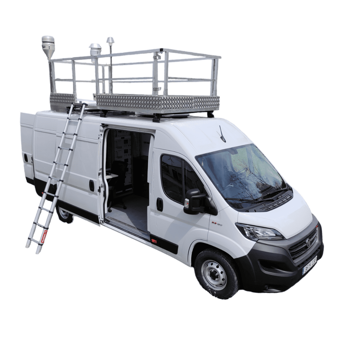 Vehículo acondicionado para albergar equipos de vigilancia de contaminación atmosférica y meteorología. Diseño y adaptación de vehículo en función de las necesidades del cliente y equipado con todo lo necesario para meter todos los equipos de control y el material complementario necesario para asegurar un buen funcionamiento y resultado del proyecto.