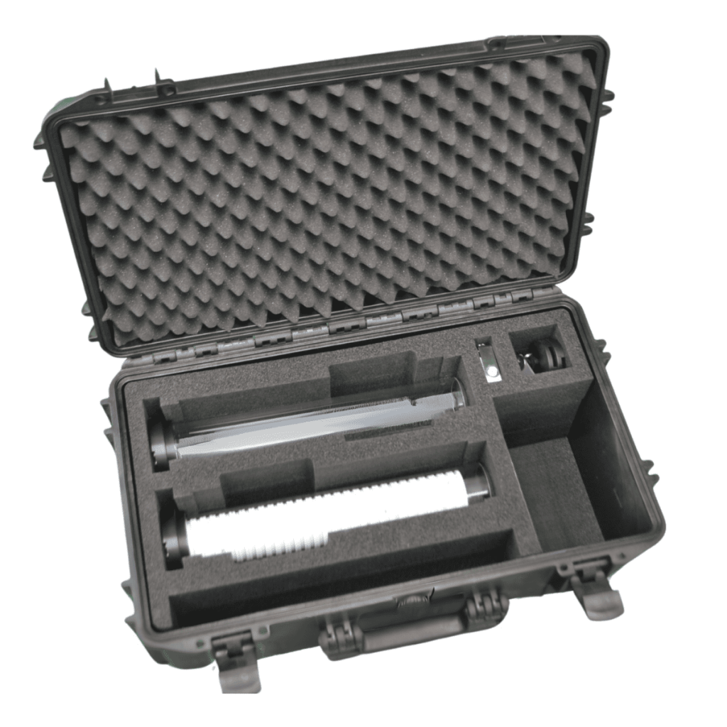 Maleta negra con espuma para garantizar un transporte seguro de las muestras con espacios para dos portafiltros